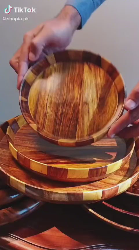 Enhance your dining and serving experience with this Handmade Wooden 3 Plates Set, thoughtfully crafted to combine natural beauty, durability, and timeless elegance. Each plate is made by skilled artisans using high-quality natural wood, making every piece unique in grain and texture.