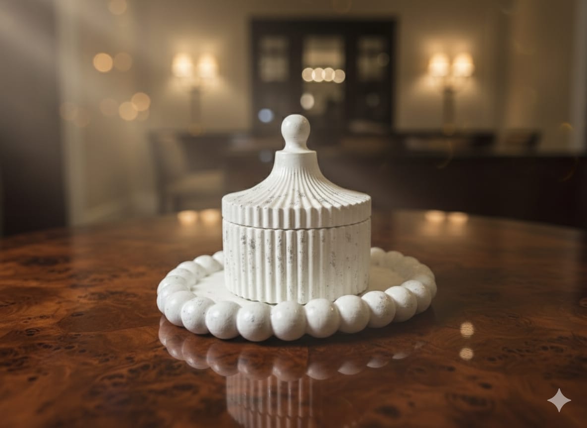Premium white ceramic with elegant fluted/ribbed design