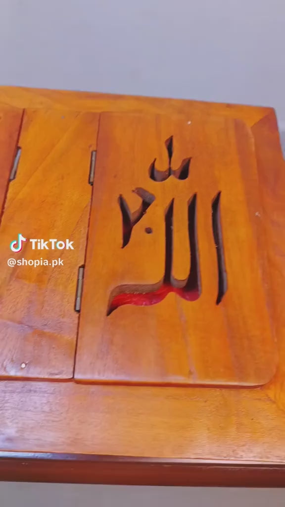 Honor the Holy Quran with this Handmade Wooden Quran Box, thoughtfully crafted to combine reverence, functionality, and fine craftsmanship. Made from high-quality natural wood, this box is designed to safely store the Quran while also providing a roll-top recitation stand on the upper side, allowing comfortable and respectful reading.